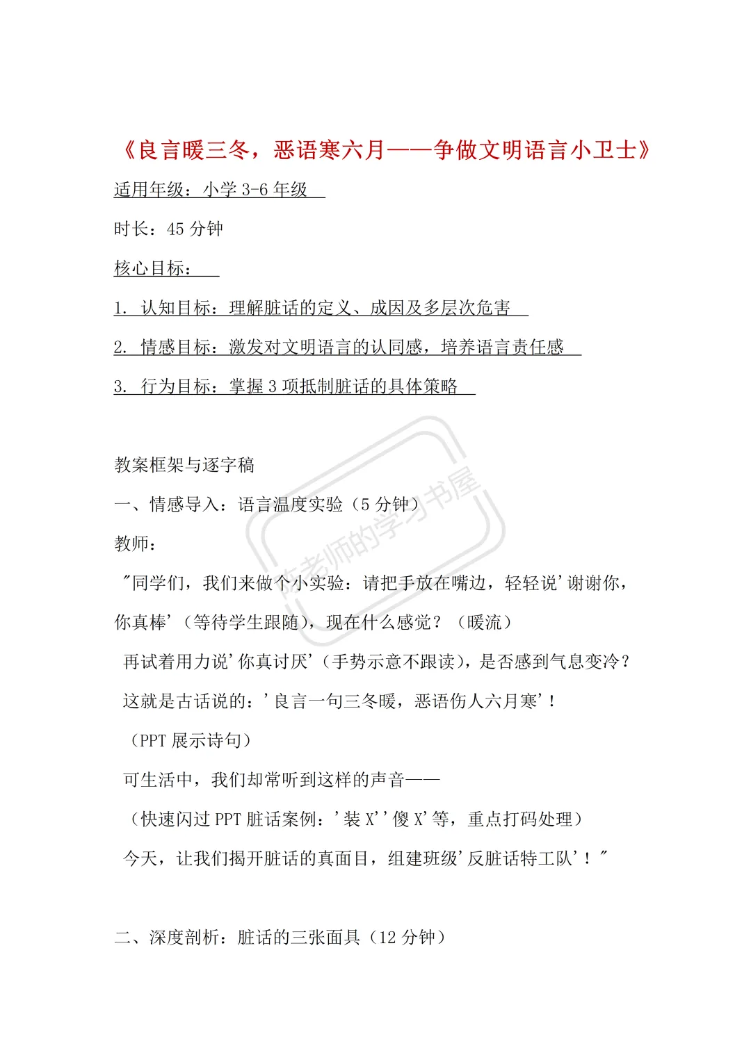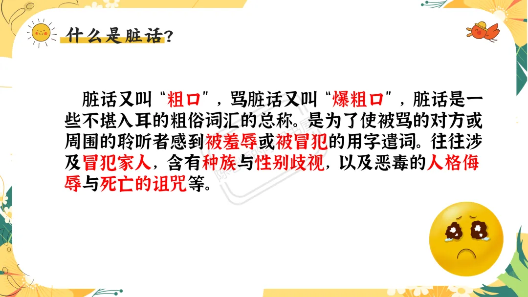 小学拒绝脏话主题班会33页PPT|良言一句三冬暖,恶语伤人六月寒