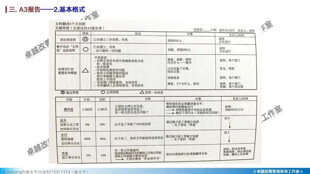 普通报告是“我干了什么”,A3报告是“问题是什么、我如何拆解、如何验证、如何防止复发”。前者是功劳簿,后者是手术刀。