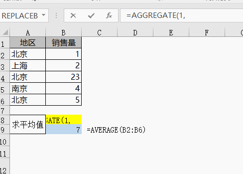 =AGGREGATE(1,5,B2:B6) 可以忽略隐藏行求平均值