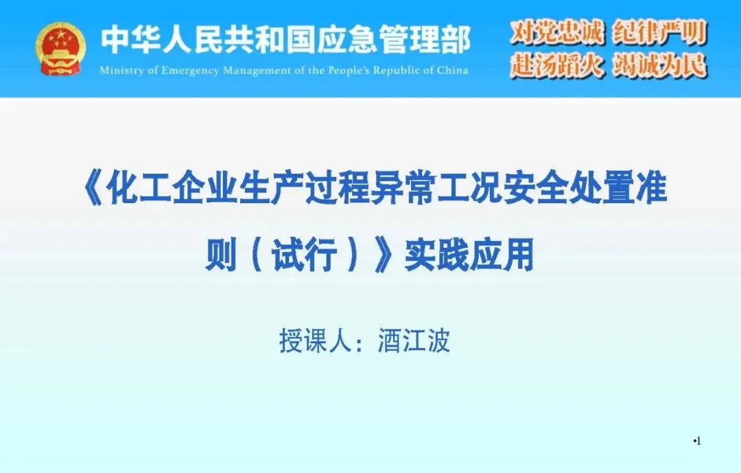 >精品PPT---《化工企业生产过程异常工况安全处置准则(试行)》实践应用