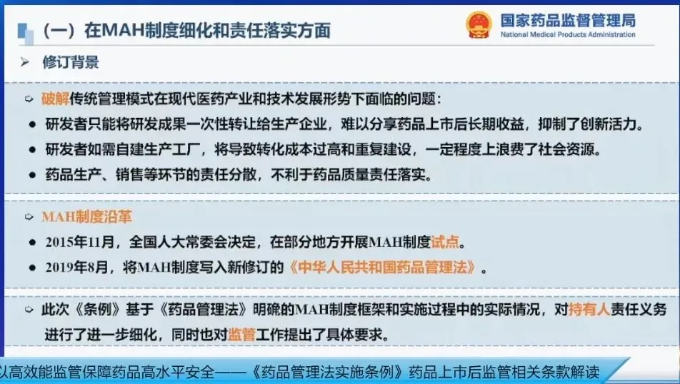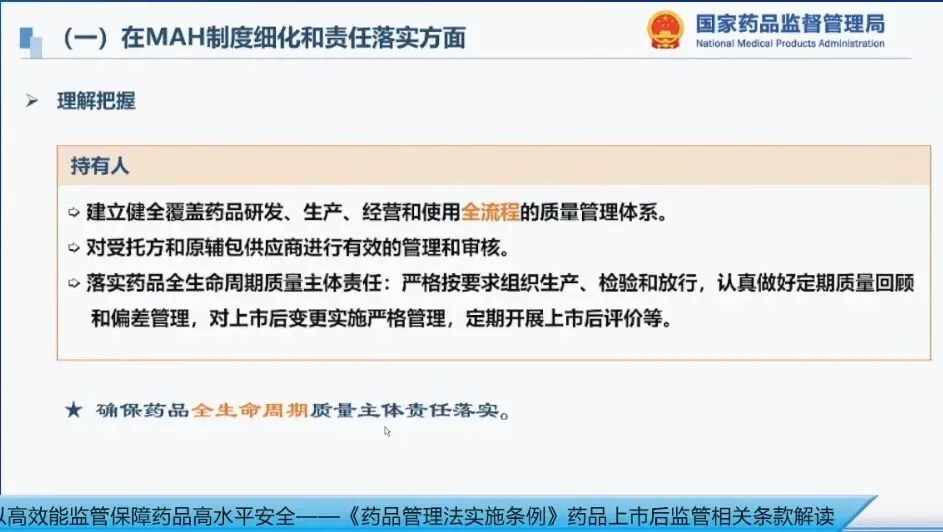 (一)药品上市许可持有人制度及持有人责任的细化落实