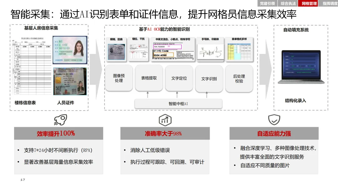 此外,方案还强调数据资源的整合与共享,通过统一数据接入、融合与应用,打破信息孤岛,提升基层治理的协同性和精准性。最终,通过本方案的实施,将构建一个看得清、效率高、执法准、会思考的基层治理基础设施,为推进基层治理体系和治理能力现代化提供有力支撑。