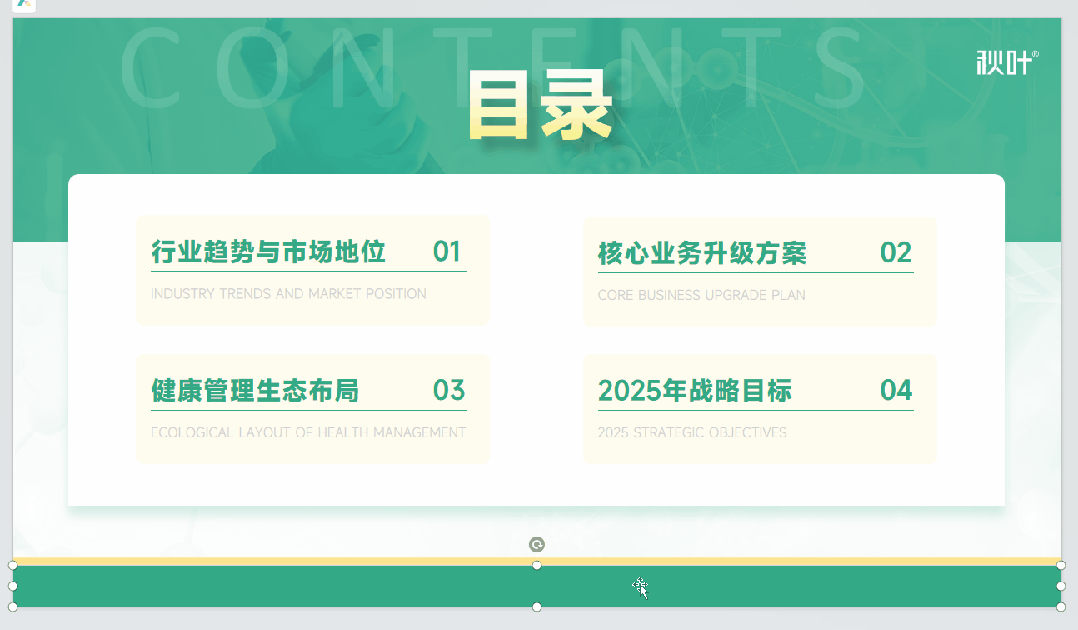 给 PPT 页面底部加一些装饰元素,不仅可以平衡构图,避免头重脚轻;