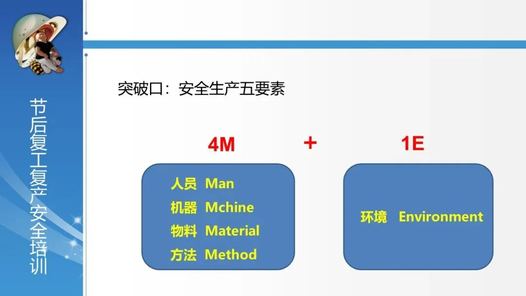 引入 “4M1E”(人、机、料、法、环) 作为分析和管理安全生产的系统框架,强调“人”是最活跃也是最大的风险源。同时,提出了 “安全工作五步法”(停、想、识、查、护),为安全负责人提供了现场风险辨识和个人安全行为引导的实用工具,奠定了管理的理论基础。