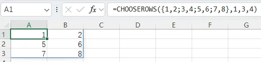 可能有的读者觉得这样和前面的CHOOROWS函数没有什么区别,其实不然。因为我们这里可以接受两个不同的数组参数。比如下例的第一个参数是常量数组,并且元素用逗号间隔,第二个参数是区域数组。
