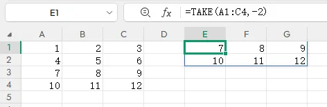 DROP函数功能差不多,但是第二三参数分别为删除的行、列。以下仅举一例,意思是删除后两列。六、VSTACK和HSTACK函数
