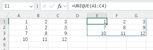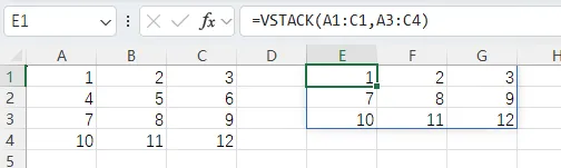 比如上面的例子就是把两个区域数组A1:C1和A3:C4堆放在一起。