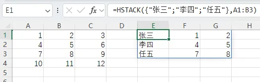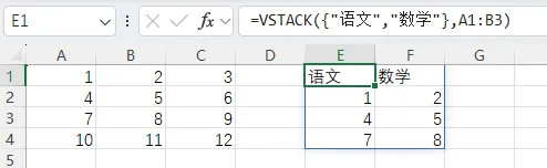 HSTACK函数的功能类似,只是按横向堆放。并且第一个参数的元素之间用分号间隔。