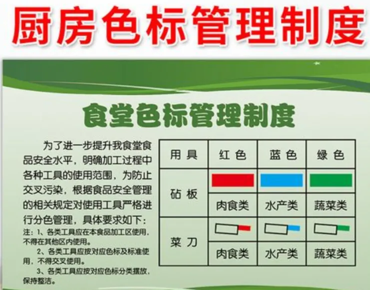 厨房色标管理是食品安全管理体系的重要组成部分,是预防交叉污染、保障食品卫生安全的关键措施。通过科学合理的颜色标识系统,能够有效区分不同用途的厨具、设备和操作区域,降低食品安全风险,提升厨房管理效率。