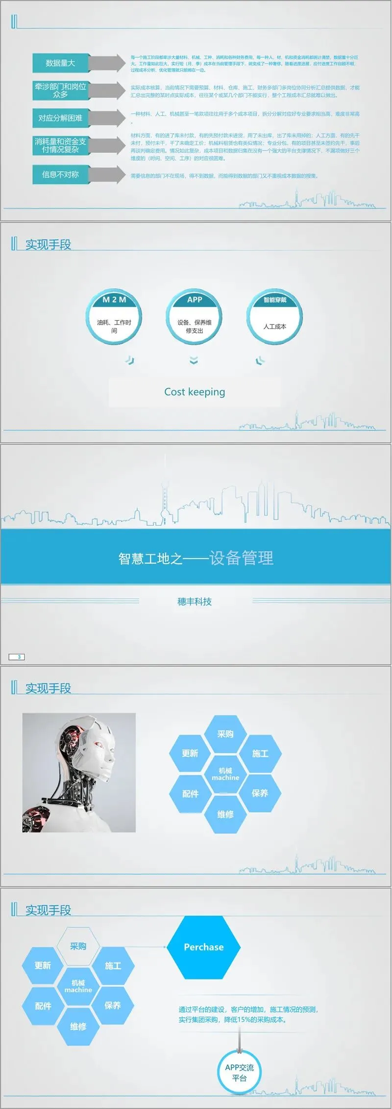 - 成本管理:通过 M2M 技术、APP、智能穿戴设备,解决数据量大、部门协同难、成本分解复杂、信息不对称问题,实现精准核算。