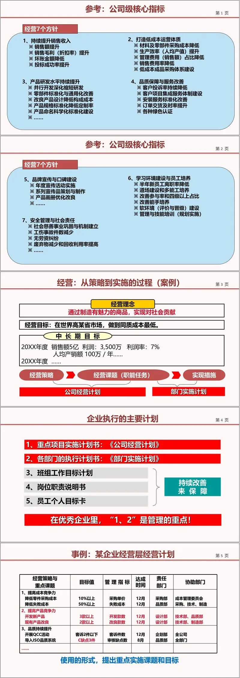 方针目标管理是精益落地的关键抓手。框架提出 “战略 — 部门 — 岗位” 三级目标分解体系,通过经营计划制定、执行跟踪、述职报告、绩效改善四大环节,确保目标层层落地。企业需围绕销售收入提升、低成本运营、产品研发、品质保障、品牌建设、人才培养、安全管理七大方针设定核心指标(KPI),并借助财务损益表等工具进行动态监控。例如,通过 “售价 = 成本 + 利润”“利润 = 售价 - 成本”“成本 = 售价 - 利润” 三种经营类型的对比,明确精益管理倡导的 “利润中心型” 思想,即通过主动降低成本保障目标利润,而非依赖售价或销量被动调整。