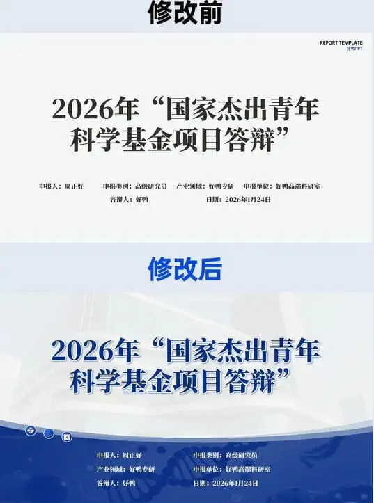 一份答辩PPT的排版,藏着科研成果的“第一印象分”。2026年“国家杰出青年科学基金项目答辩”PPT的优化升级,用细节重塑专业感,让信息传递效率翻倍。