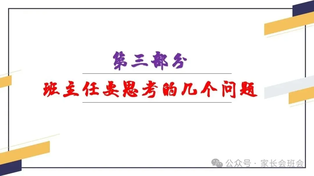 一线班主任的日常;班主任的角色定位;班主任要思考的几个问题;如何做智慧型班主任。