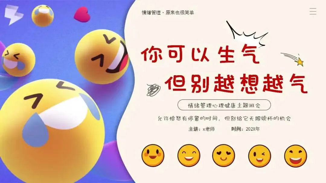 情绪管理、心理健康主题班会ppt:你可以生气,但别越想越气。