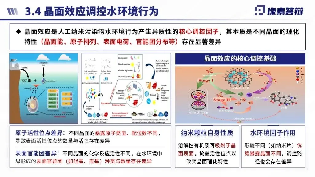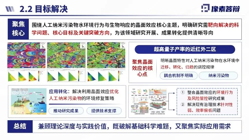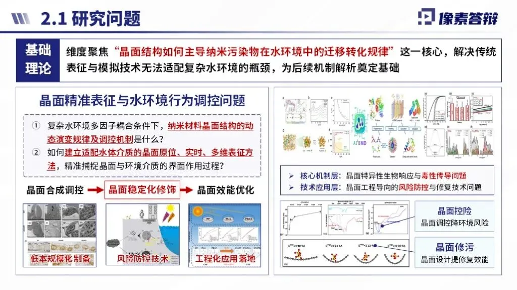 聚焦晶面精准表征、水环境行为调控等基础理论问题,同时瞄准利用晶面效应优化环境修复策略的应用需求,明确研究需解决的关键科学问题,兼顾理论深度与实践价值,为该领域研究提供清晰导向。