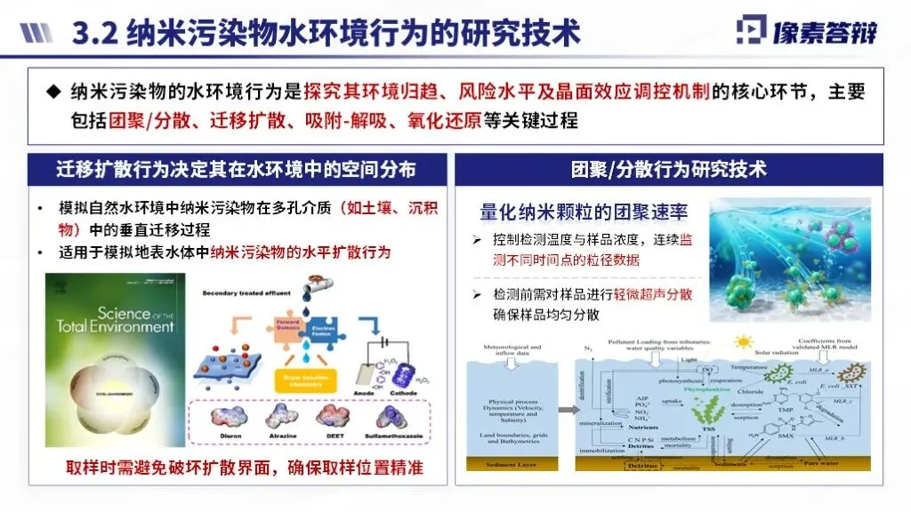 详细阐述四大关键研究内容:制备单一暴露晶面的人工纳米污染物样品;开发迁移扩散、团聚 / 分散等水环境行为研究技术;建立急性毒性、氧化应激等生物响应检测技术;解析晶面理化特性差异对水环境行为的调控机制,形成全面的技术支撑体系。