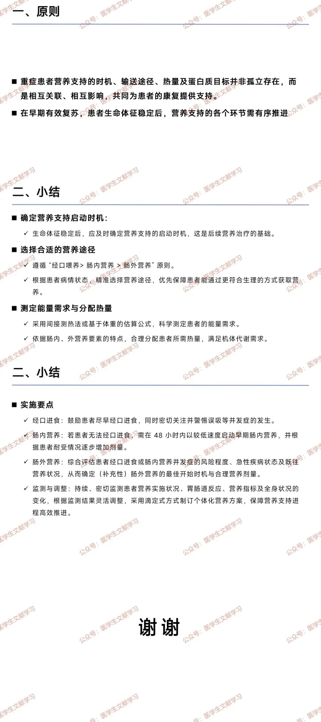 - 途径选择:经口 > EN>PN,EN 首选鼻胃管,高误吸风险者考虑幽门后喂养,持续输注更耐受。