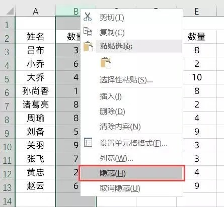 多数人会手动选中不需要的列,鼠标右键,将其隐藏,如此操作下去: