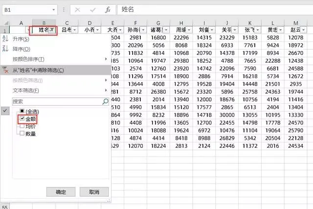 现在需筛选出金额那列: