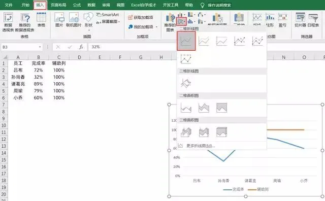 ❷插入折线图