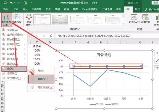 之后选中辅助系列,再添加元素,选择线条,选择垂直线,如下: