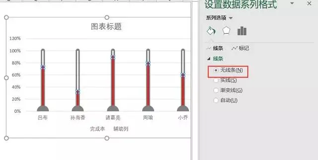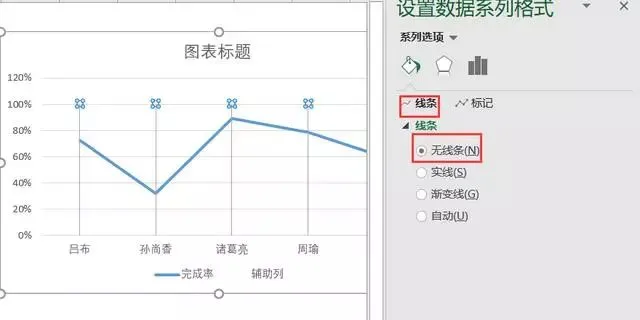 使用鼠标双击此系列,可弹出设置数据格式,将线条设为无线条。