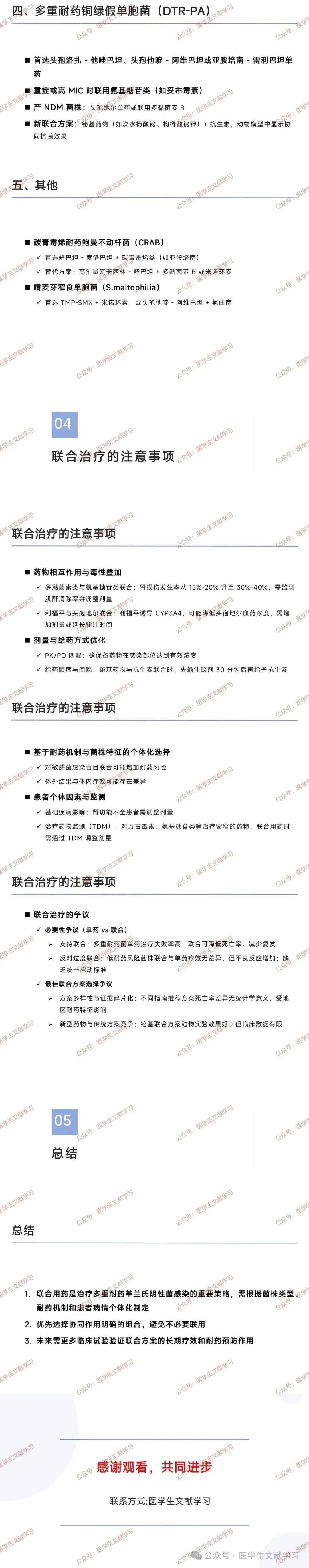- 避免盲目联合:低耐药风险菌株联合用药不良反应增加,疗效无优势。