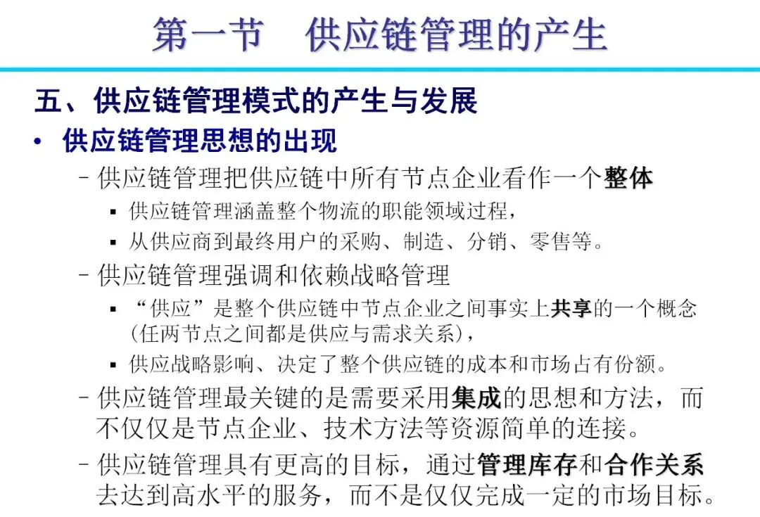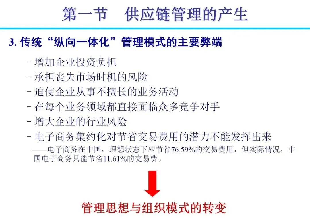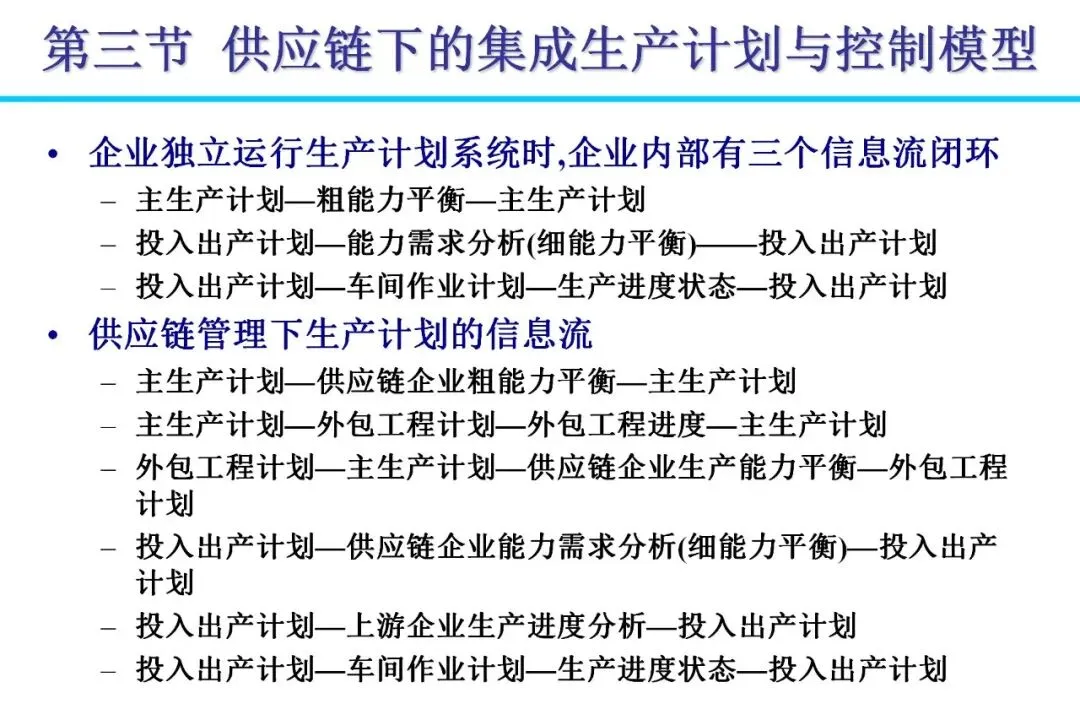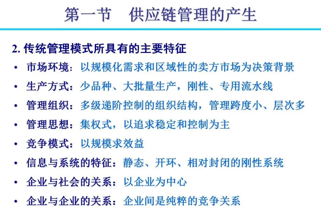 传统企业多采用“纵向一体化”模式,囊括从生产到分销的全流程,导致资源分散和效率低下。随着消费需求个性化、制造全球化等变化,管理模式逐步向“横向一体化”转变。企业通过外包非核心业务,与供应商、分销商建立战略联盟,形成扩展企业。这种模式降低资本风险,提高柔性,例如日本企业通过准时生产减少浪费,实现零库存目标。合作中,信息共享是关键,避免“牛鞭效应”带来的需求扭曲。