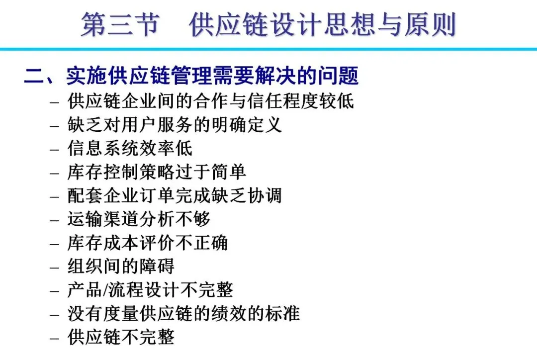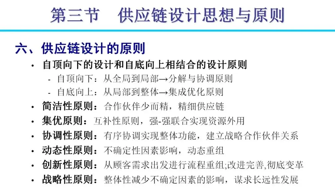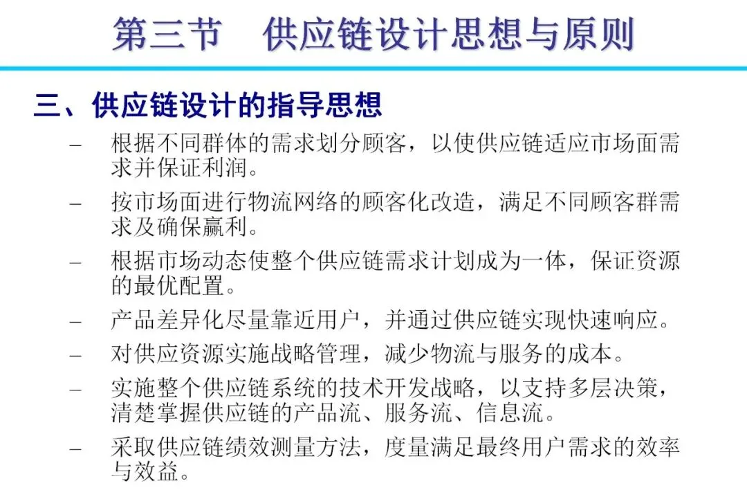 供应链系统设计需根据产品类型定制。产品可分为功能性(如日用品)和创新性(如时尚品),前者适用有效性供应链,目标低成本;后者需反应性供应链,强调快速响应。设计时,通过网络优化平衡库存、运输和设施成本,例如多级库存模型能降低总成本30%以上。实际案例显示,通过整合制造与分销,可将库存从7周减至5周,实现显著节省。决策应遵循自顶向下原则,结合线性规划工具,确保资源高效配置。