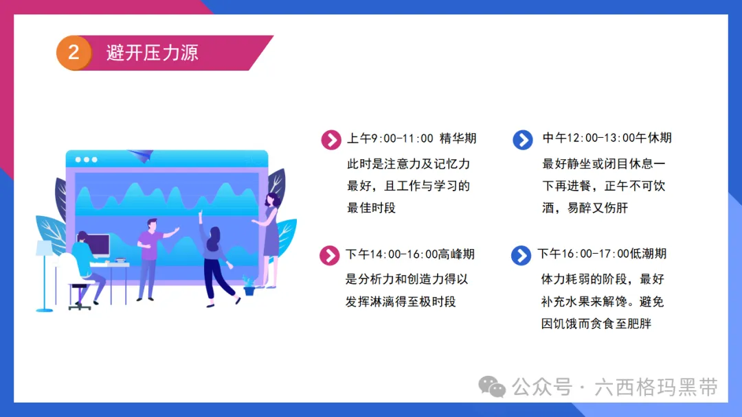 合理的时间管理是避免压力的重要手段。根据研究表明,一天中不同时间段的工作效率存在差异,因此可以根据这些规律合理安排工作和休息时间: