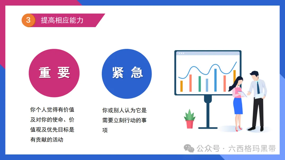 - 紧急但不重要:如会议、准备事项、干扰、电话等。这些任务虽然需要及时处理,但对个人和组织的核心目标贡献较小,可以通过合理安排或委托他人完成。