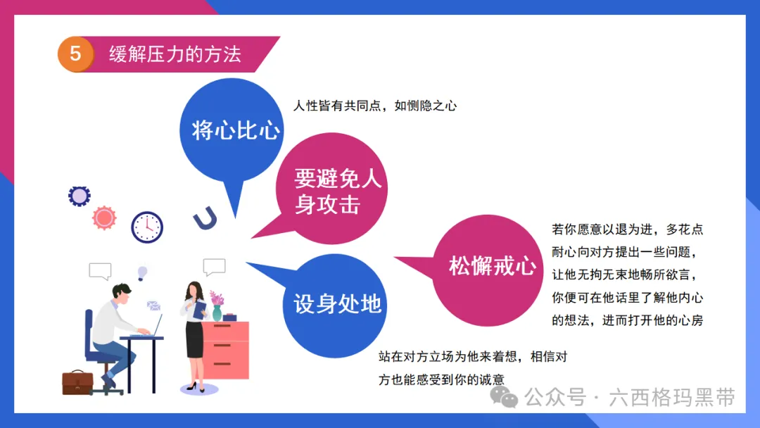 - 松懈戒心:以退为进,耐心引导对方表达自己。通过这种方式,我们可以更好地建立信任关系,减少因误解或猜疑带来的压力。