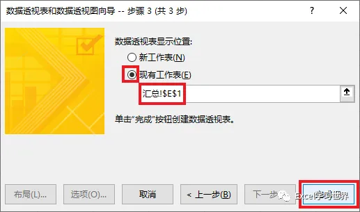7. 在弹出的对话框中选择“现有工作表”及所需上传至的位置 --> 点击“完成”