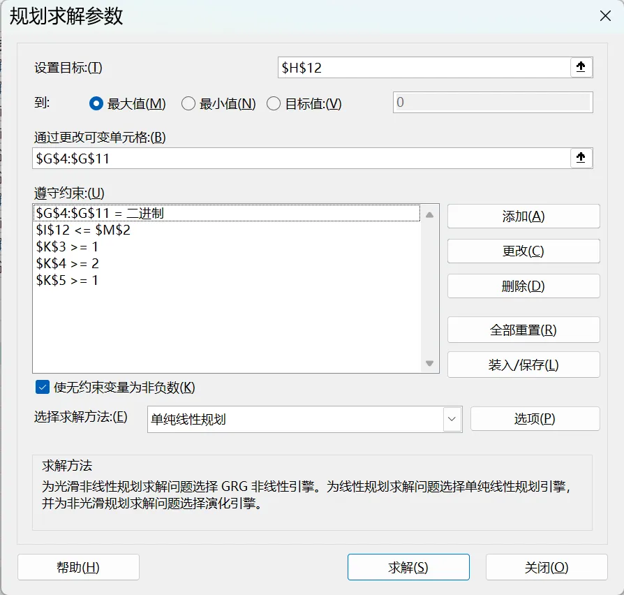 现在就可以进行规划求解设置了,目标值是项目利润求和,求最大值,