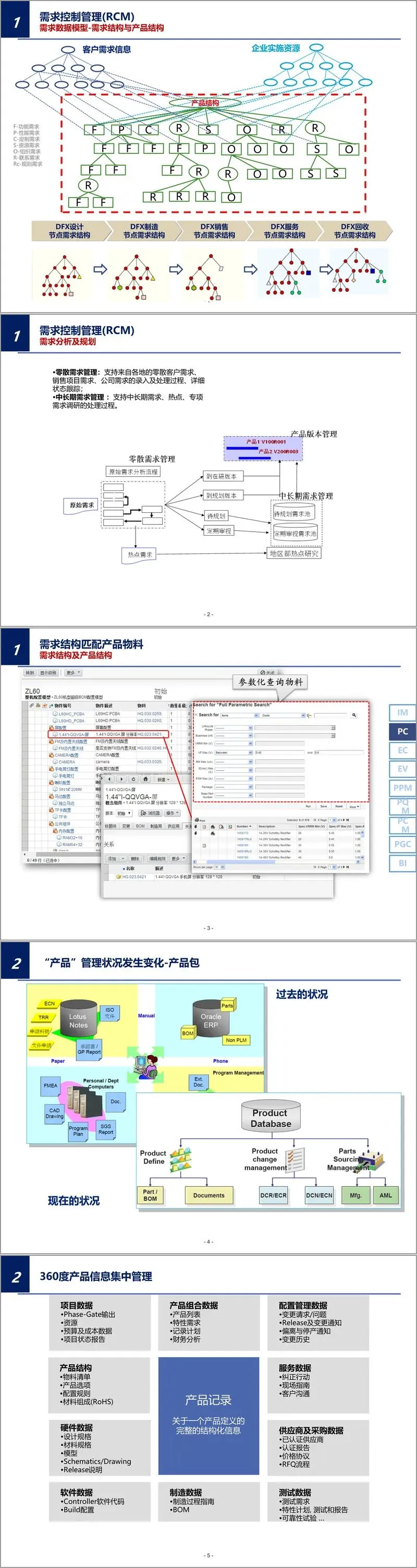 需求管理模块采用分层结构,从原始需求、正式需求到系统需求、设计需求,建立完整的需求跟踪体系。通过需求结构匹配产品物料需求结构及产品结构,实现客户需求与产品设计的有效对接。产品数据管理采用360度集中管理模式,覆盖项目数据、产品组合数据、配置管理数据等全要素信息。
