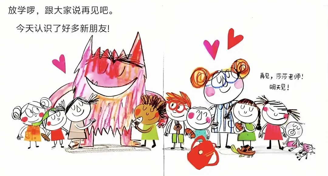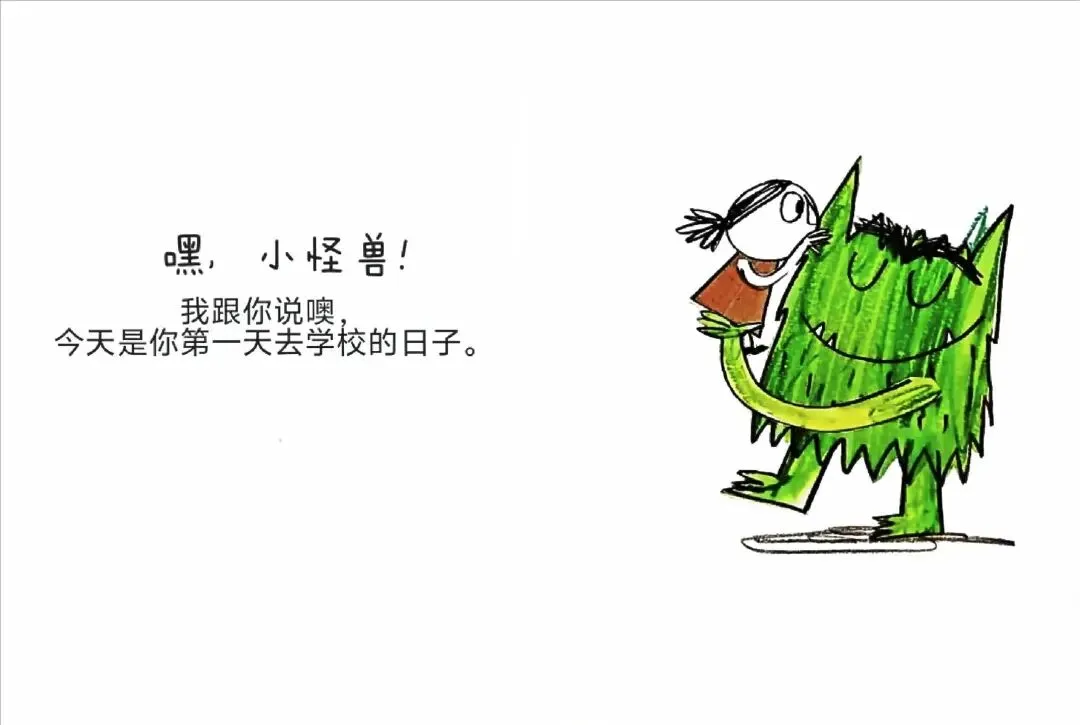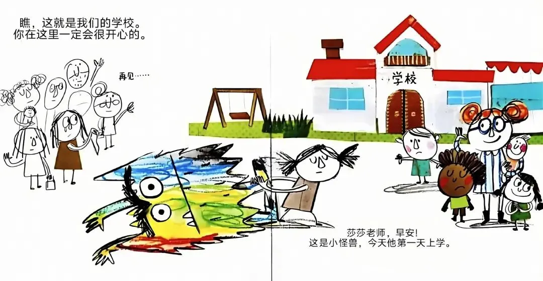 莎莎老师,早安!这是小怪兽,今天他第一天上学。