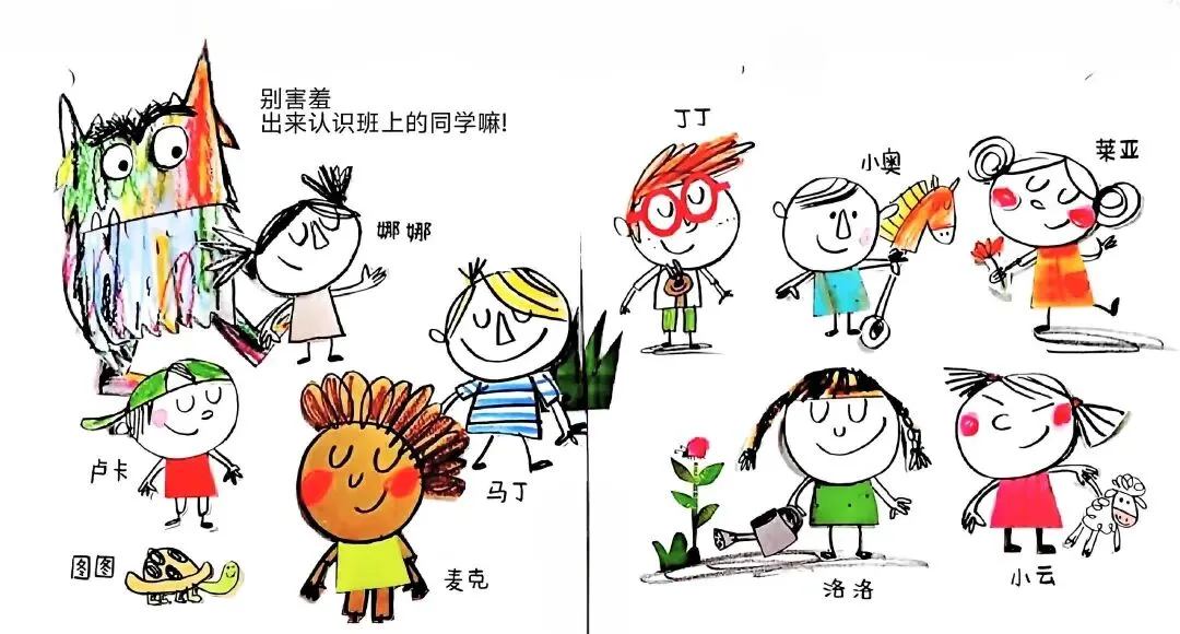 别害羞。出来认识班上的同学嘛!