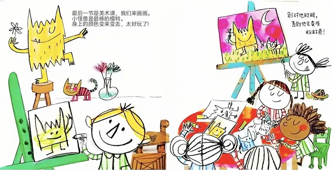 小怪兽是最棒的模特。身上的颜色变来变去,太好玩了!