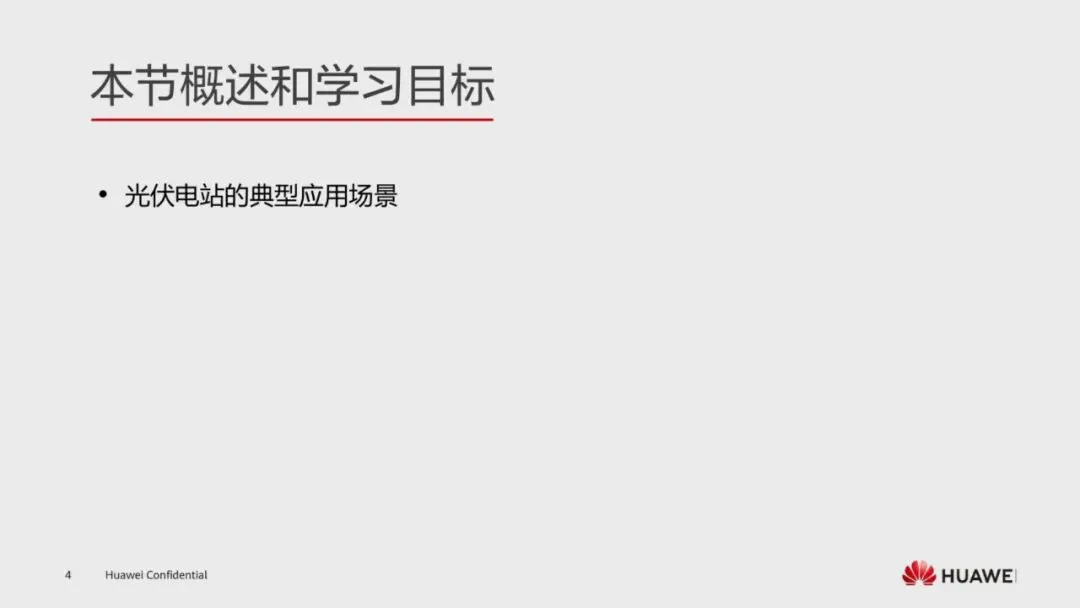 3、电站管理系统基础知识:随着我国光伏产业快速发展,存量电站不断增多,提升电站效能与运维能力成为了迫切的需求。本课程介绍包括集控集维、站控在内的电站管理系统基础知识并简要介绍了华为智能光伏管理系统的定位和价值。目的是了解电站管理系统产生的背景,了解电站管理系统的基础知识,区分电站管理系统与SCADA,了解华为站控的定位与差异化价值。