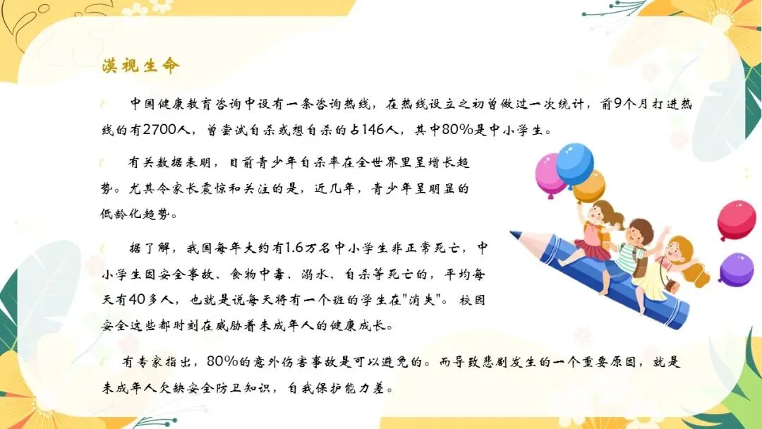 【小学心理教育】生命教育班会ppt:生命如花,珍爱生命。