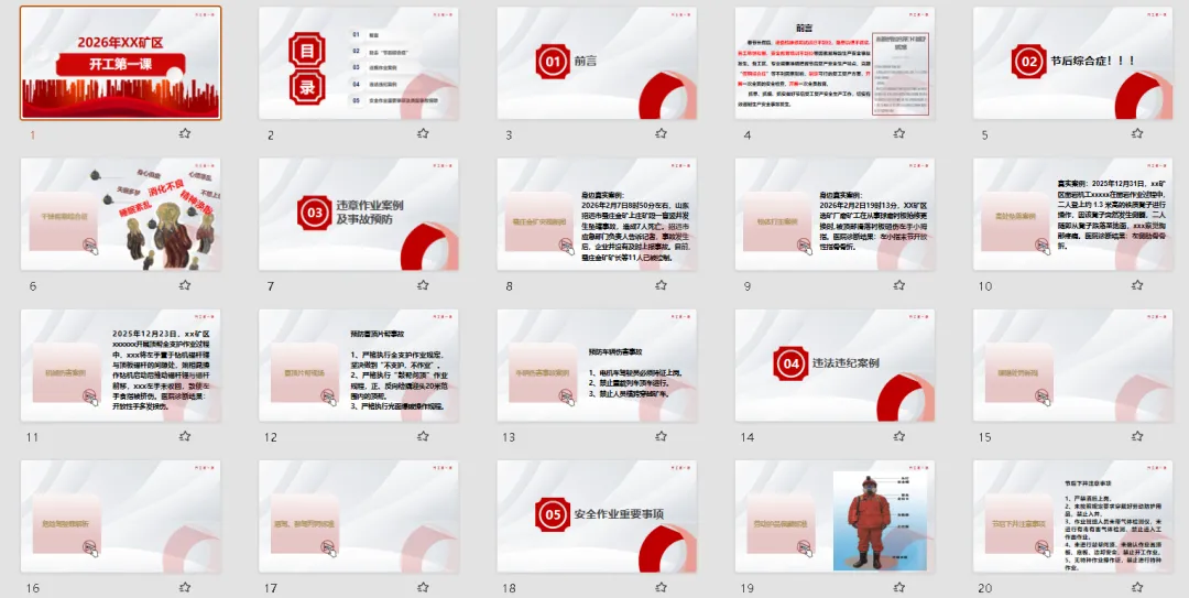 为了帮大家解决这个难题,我们精心打磨了这套 《2026年XX矿区开工第一课》 培训课件。