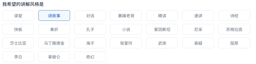 而围绕语音介绍方面也可以选择不同的方式,比如讲故事的方式,比如对话的方式(有点类似于播客的方式了)