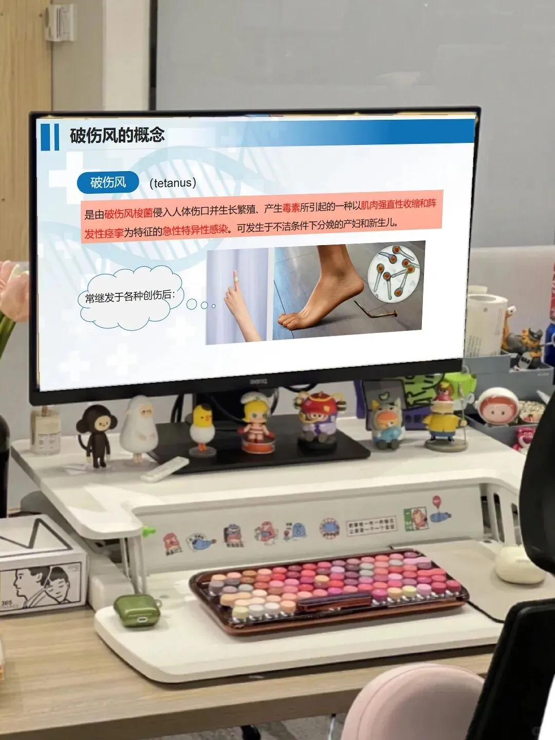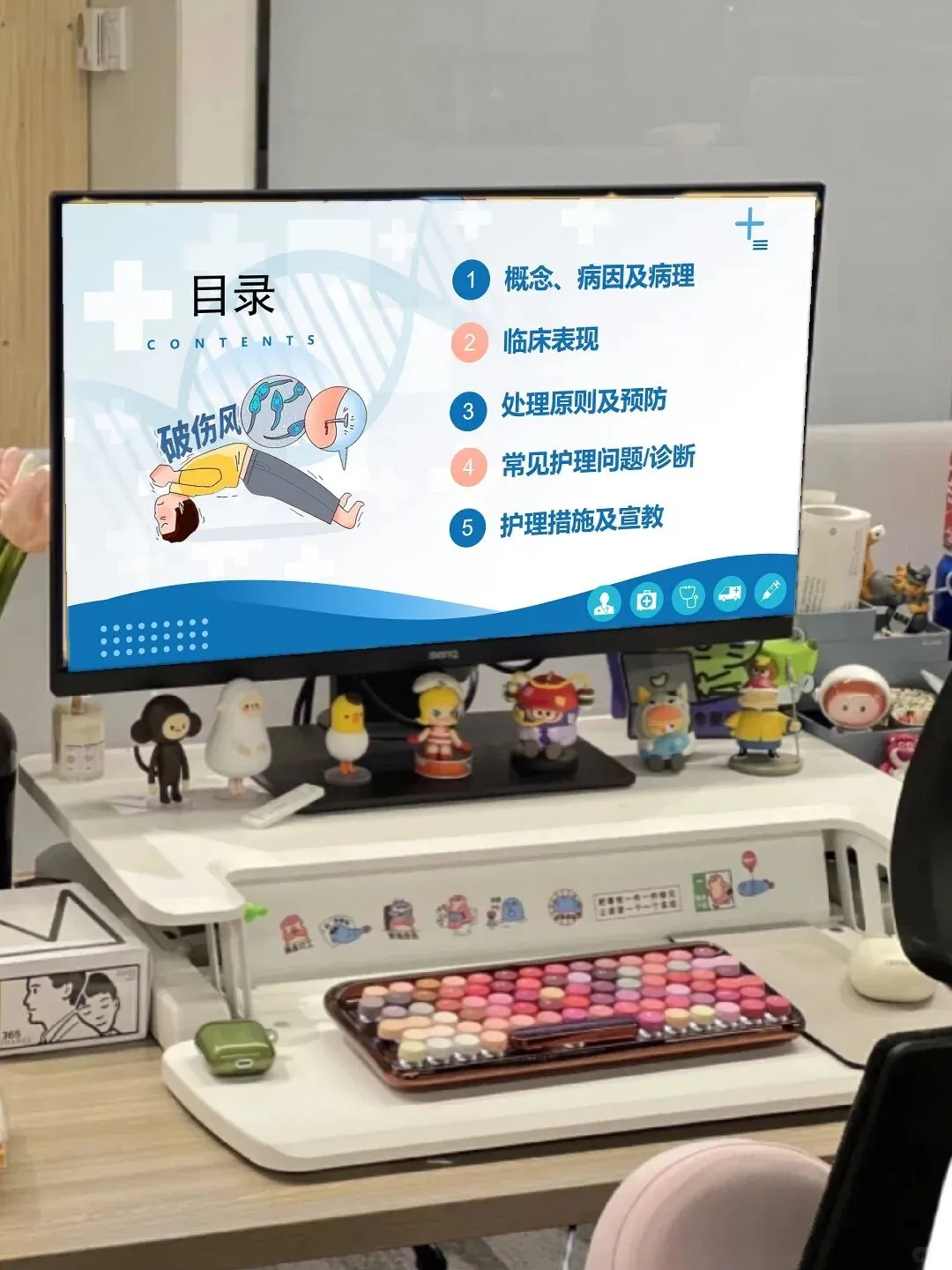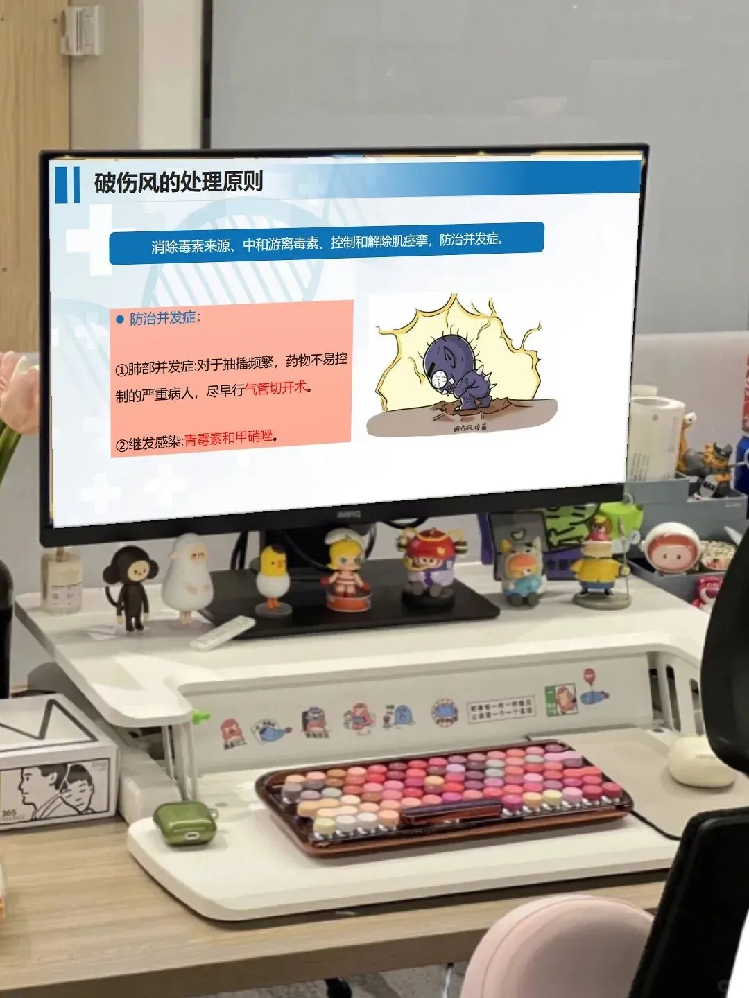 日常护理里,咱们还要把细节做扎实:将患者安置在单人隔离病室,减少刺激避免诱发痉挛;严格执行接触隔离,器械敷料专用并规范消毒;根据病情给予营养支持,做好体温、脉搏等生命体征的严密监测。另外,破伤风的预防也很重要,主动免疫和被动免疫的相关知识,咱们不仅要掌握,还要做好健康宣教,让患者和家属了解预防要点。