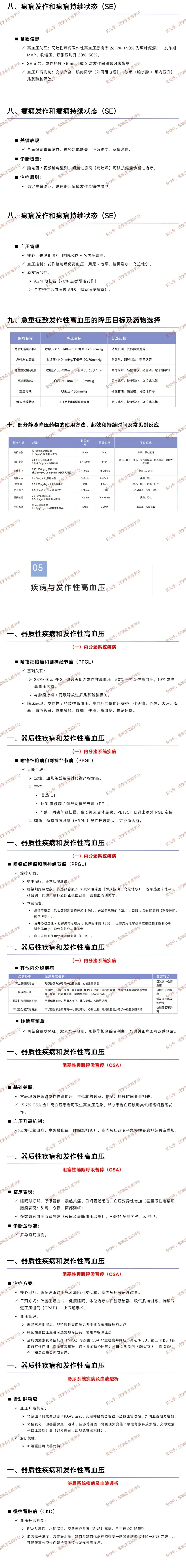- 管理策略:多学科协作,优先去除诱因;降压目标为诊室血压≥110-130/80-85mmHg;推荐拉贝洛尔、尼卡地平等静脉药物。