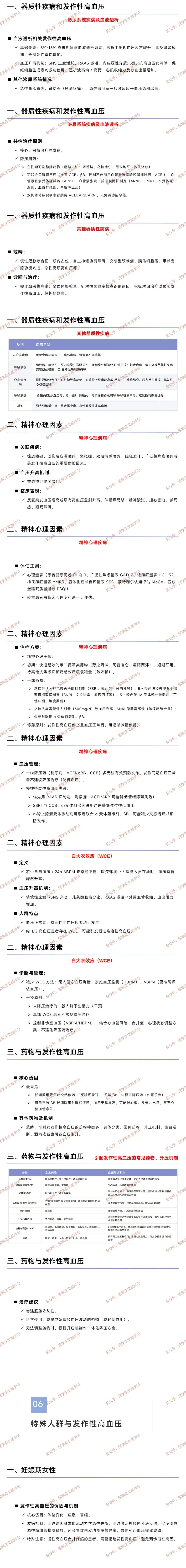 - 管理重点:危急重症需早识别、稳体征;器质性疾病需查因治因;药物相关需明确药物与血压关系并调整;精神心理相关需早诊早治、改善心理状态。
