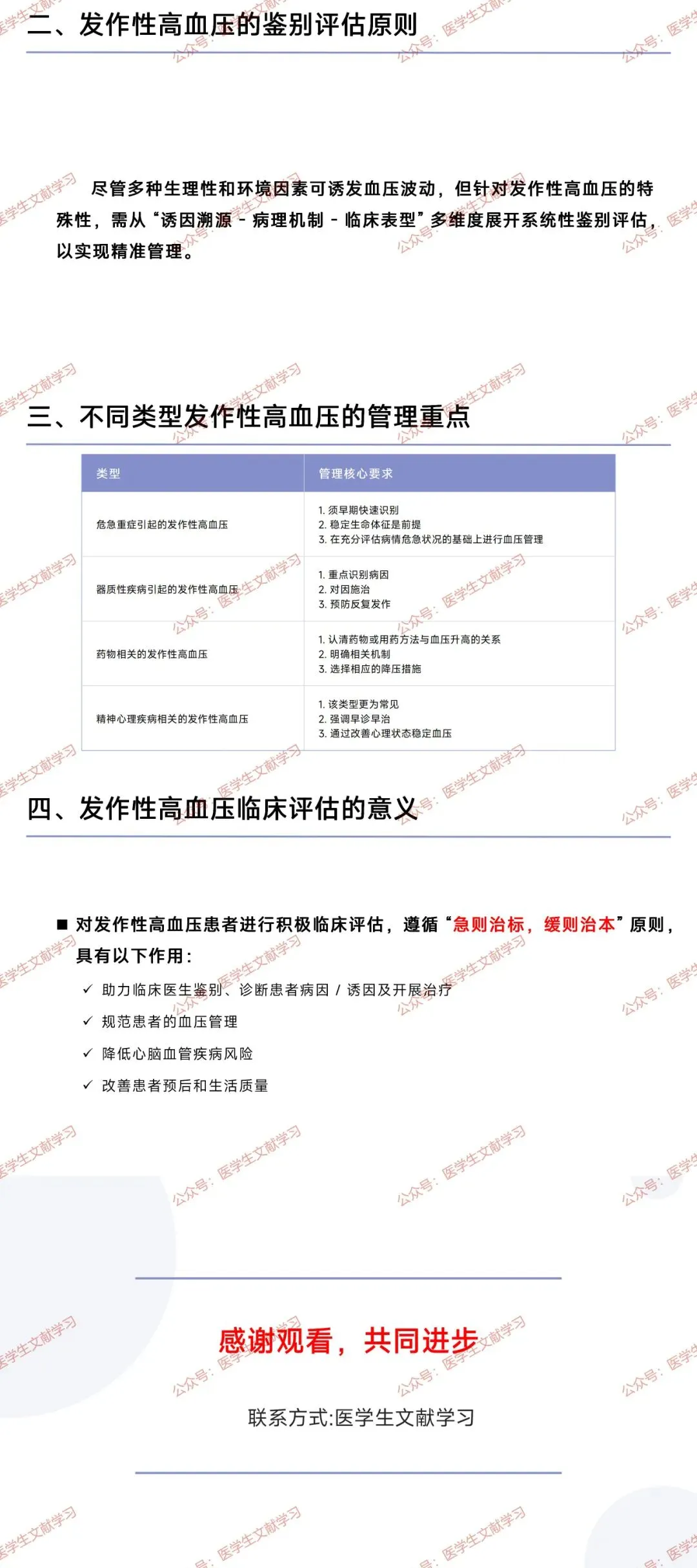 - 关系:发作性高血压既是危急重症的临床表现,也是导致危急重症的诱因。