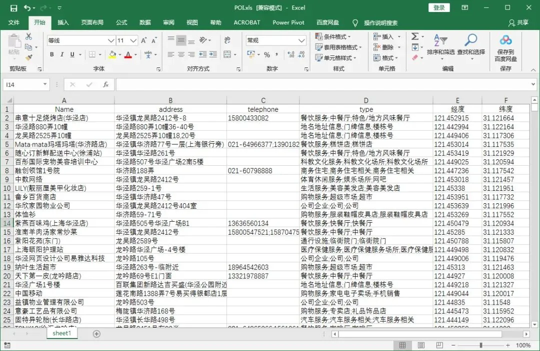 打开需要处理的 Excel 数据,可以看到经度和纬度在第 5 和第 6 列,如下图所示。