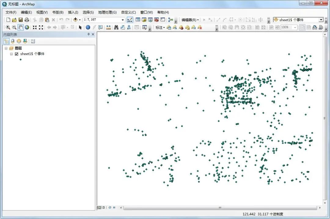 完成设置后可以将 Excel 表导入 ArcMap,如下图所示。