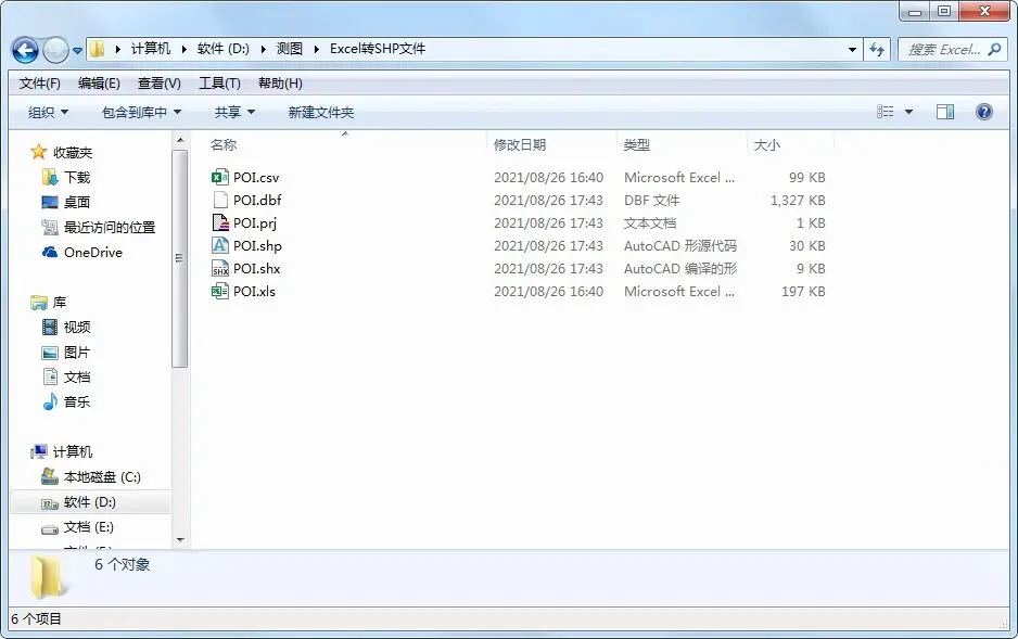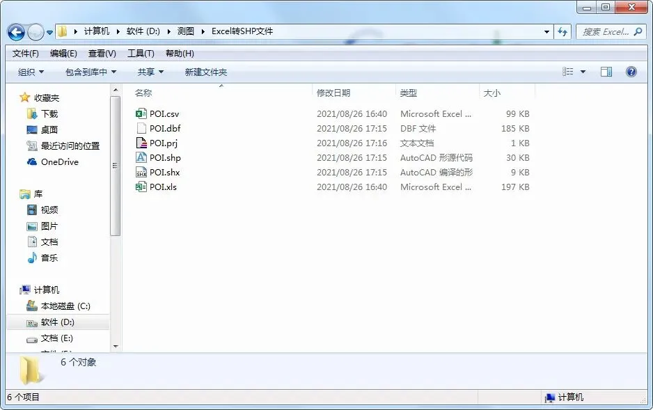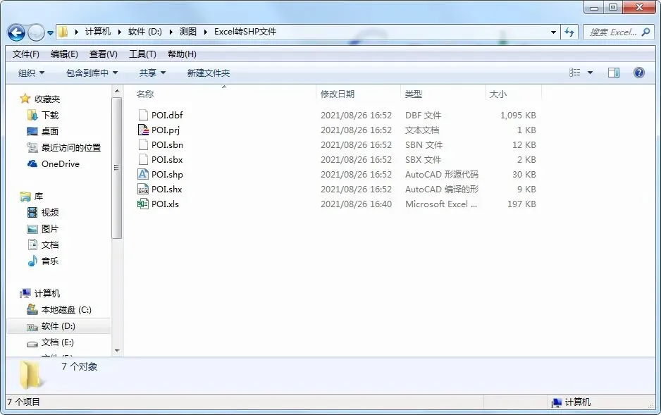 导出完成后打开文件所在的目录,可以看到导出的 SHP 文件,如下图所示。