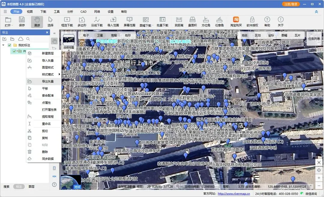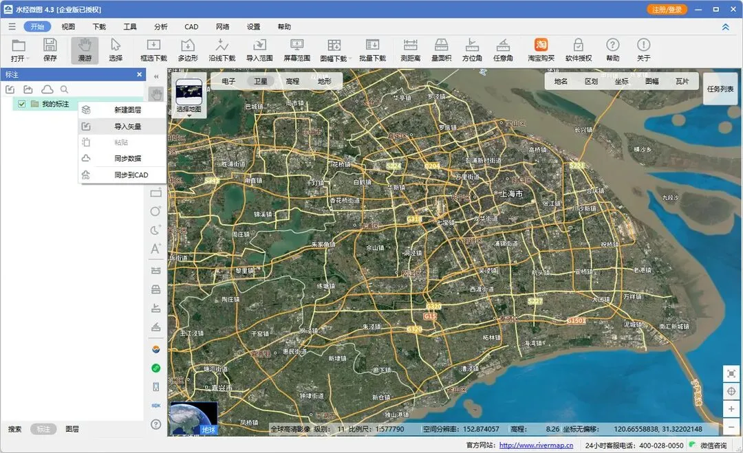 打开水经微图,在我的标注上点击右键,选择“导入矢量”,如下图所示。